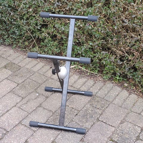 Fodstøtte til guitarudstyr fremstillet i metal med gummioverflade for skridsikkerhed. Justerbar højde med foldbart design, som giver stabilitet og komfort under guitarspil.