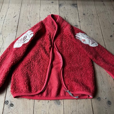 Molo trøje fleecejakke i størrelse 116 til piger. Jakken er grå med pink ærmer og lavet af polyester. Den har lynlås foran og lommer, og er designet til børns brug.