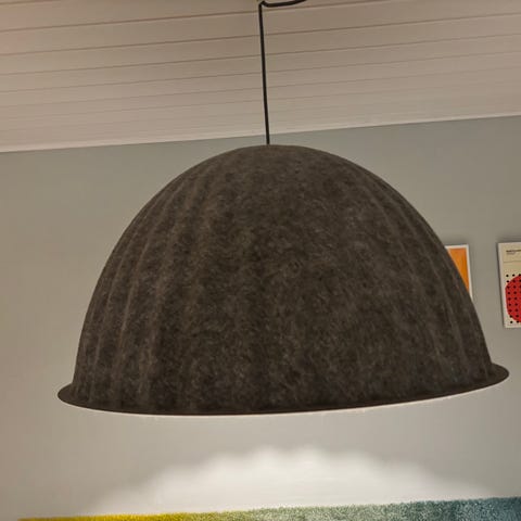 "Under the Bell er skabt ud af genanvendeligt filt og er derfor også miljørigtig. Ydermere absorbere lampen pga dets materiale akustikken i rummet. En lampe i utrolig smart design som også er yderst anvendelig."