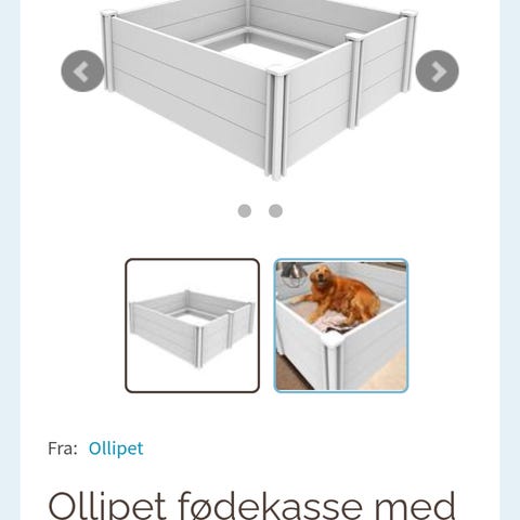 Fødekasse fra Ollipet til mindre racer, der virker perfekt. Vi har fået lavet rundstokke til fødekassen, der kan justeres i tre niveauer. Det har også virket helt perfekt. Der medfølger diverse vetbedding underlag, tisseunderlag og tæpper. Derudover medfølger der varmepumpe, der kan ligge under tæpperne og holde hvalpene varme. Den har tre indstillinger og timer, der slukker for varmepuden automatisk.
