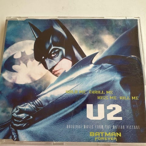 Batman Forever Original Soundtrack CD featuring various artists. Includes previously unreleased tracks by U2, Michael Kamen, Elliot Goldenthal, PJ Harvey, Mazzy Star, Nick Cave, Todd Rundgren, The Orb, Suede, The Offspring, Guns N' Roses, and more. Contains multiple tracks used in the Batman Forever film.