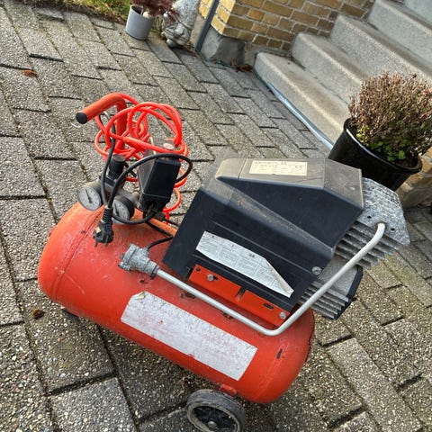 Ferrua HP 2.0 kompressor med en kapacitet på 24 liter. Kompressoren er rød og udstyret med hjul for nem transport. Velegnet til forskellige kompressoropgaver.