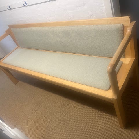 Bænk af Jørgen Bækmark, sort med lys flet. God stand.