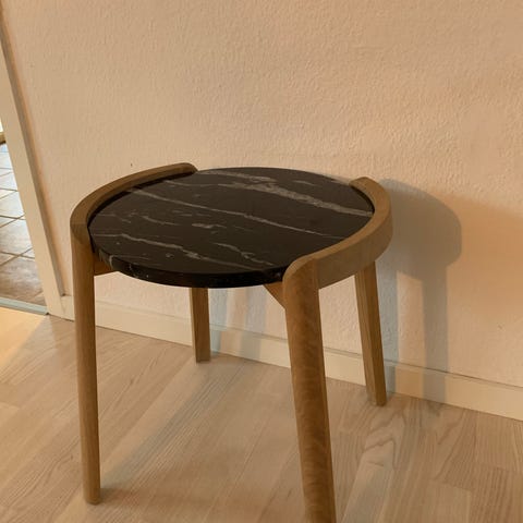 Smukt sofabord (eller sidebord) fra Bolia i lækre materialer (MASSIVT hvidpigmenteret olieret eg og en bund i marmor) sælges billigt pga. flytning. Modellen hedder Root.