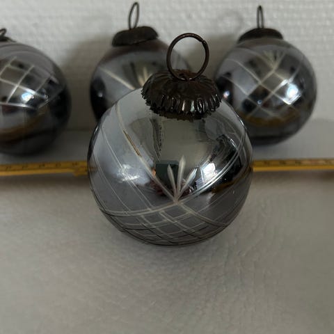 4 Vintage Glas JuleHjerter i fattigmandssølv
