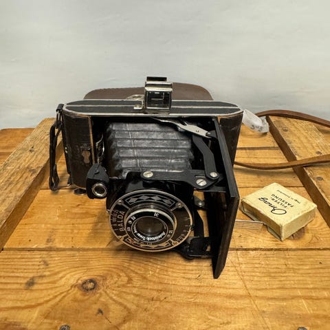 Et vintage Carl Zeiss-kamera. Det ser rigtig godt ud. En del af objektivrammen er gået løs. En kyndig person kan nemt reparere det. Alle knapper virker, og alt kan åbnes. Stil venligst spørgsmål via privat besked.
