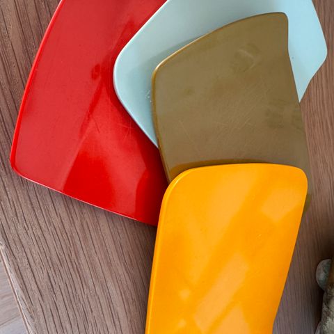 Plastik, Små frokost smørrebrædet, Bjørn Christensen, 6 små retro smørrebakker fra 60 / 70. I fantastisk stand og sjov farve.