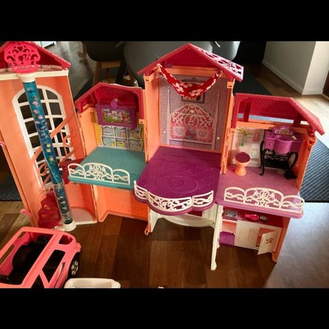 Fint men falmet af lyset og lidt ydre uden på brugsspor inde i næsten perfekt et spejl lidt flosset. Prinsessen følger selvfølgelig med. Det fylder ikke ret meget slået sammen. Min datter har elsket det. Dyre og røgfrit hjem.