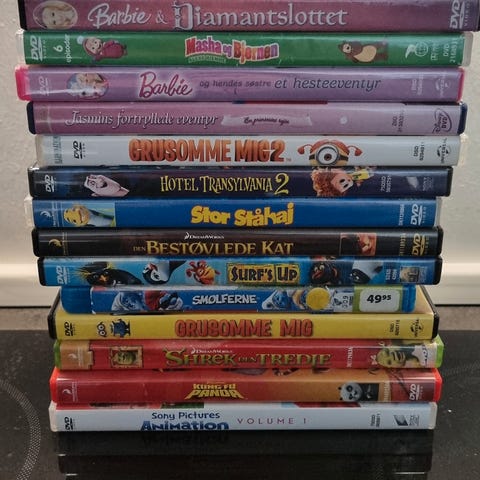 Samling af DVD-film med forskellige genrer. Indeholder både animationsfilm og spillefilm, velegnet til familieunderholdning og filmelskere. Perfekt til dem, der ønsker at udvide deres filmsamling med forskellige titler.