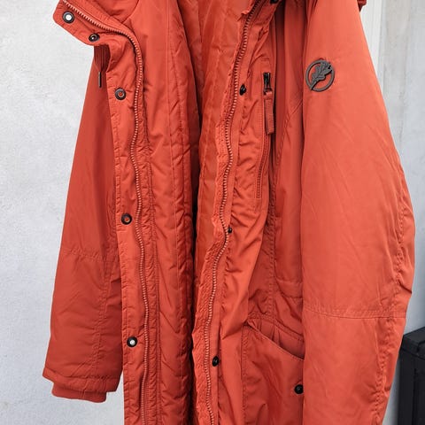 Pæn og kvindelig vinterjakke .i god stand bortset fra at foret er lidt gået op et sted..str 42.