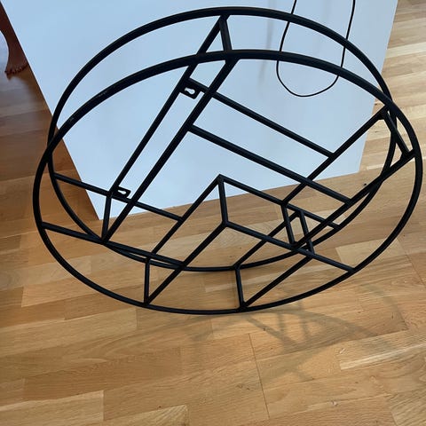 Designer væghængt rund hylde fra Bolia i god stand. Hylderne af røgfarvet glas er som nye. Et par små hvide mærker fra væg på metalrammen (se billeder). Flot dansk design der passer til stue, gang eller kontor.