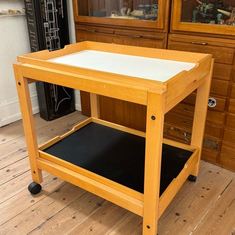 Bakkebord til praktisk brug i stue eller på kontor. Bakken ligger løst oven på understellet.