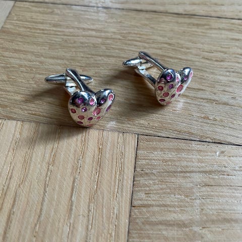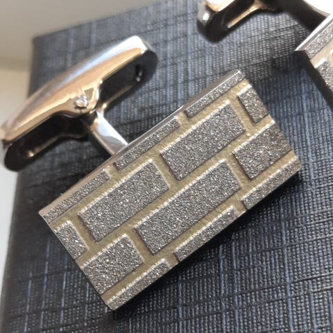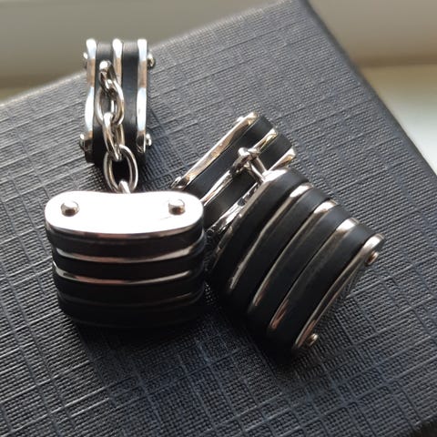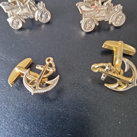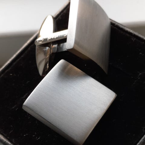 MANCHETKNAPPERNE ER NYE HVILKET TYDELIGT SES PÅ BILLEDERNE.
