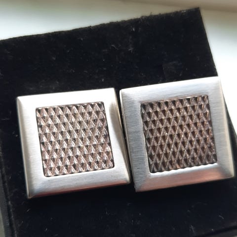 Smukke manchetknapper udført i blank stål med motiv af terninger.