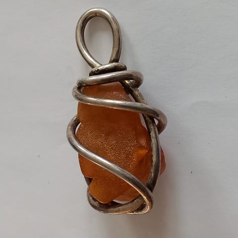 Smukt og råt vedhæng i rav med sterling sølvophæng. Vedhænget måler ca. 5 cm i længden og 1,5 cm i bredden. Ravet har en flot, naturlig struktur og varme nuancer, som giver det et unikt udtryk. Sølvophænget er stemplet og passer perfekt til både læderrem og sølvkæde.