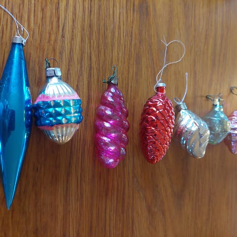 Utrolig smukke julekugler med mange år på bagen og derfor synlige brugsspor.