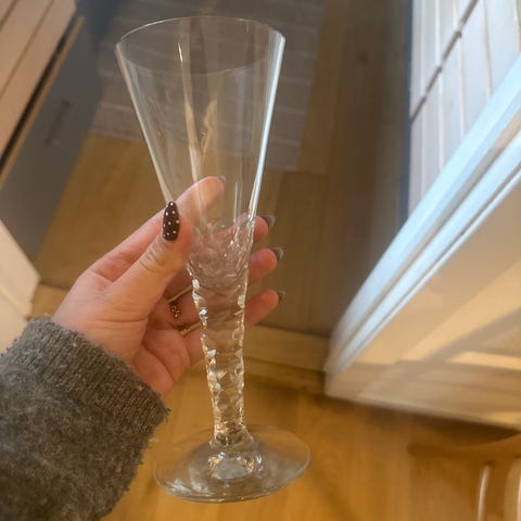 Fine coupe champagne eller drinks glas fra OYOY. Klart glas med hvide striber.