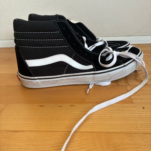Vans Sneakers i størrelse 42 med sort og hvid farve. Skoene har klassisk design med hvid snøring og gummisål. Aldrig brugt helt nye