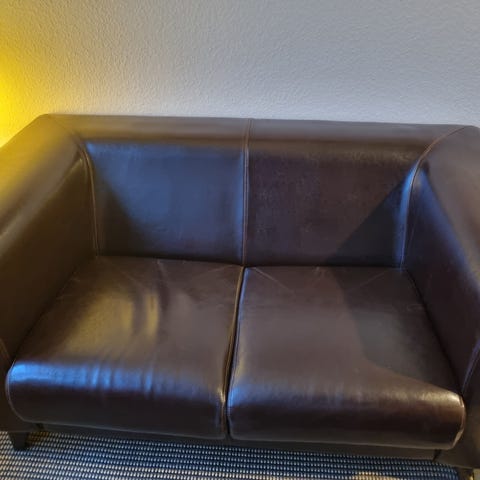 God solid pæn lædersofa, den fejler intet, der kan følge en 3 med der er gået op i sygning.