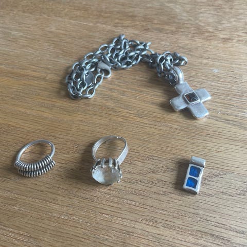 Ring og vedhæng, i sterling sølv, med gylden brun emalje, smoky quartz og topaz.