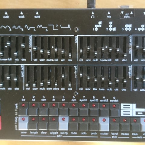 Skaber trommerytmer baseret på scratches og strums over de dæmpede strenge