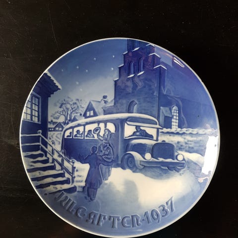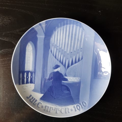 B&G juleplatte fra 1909 med titlen 'Glæde over juletræet' sælges for kr. 275. Pæn platte, uden skår.