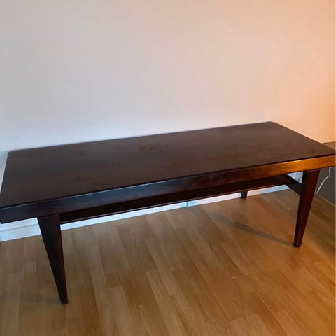 Dansk produceret kvalitets sofabord med udtræksskuffe. Mærket på undersiden er væk så præcis model kan ikke oplyses.