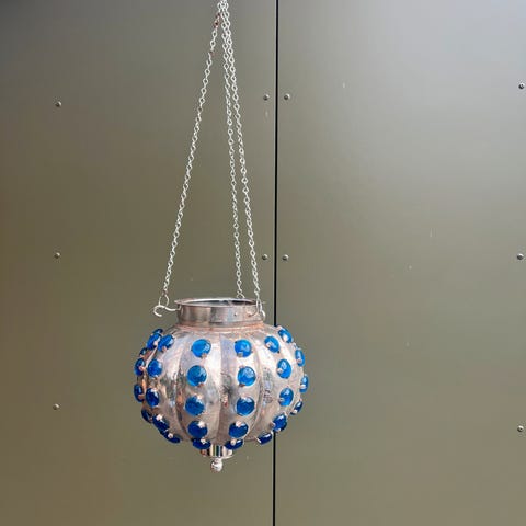Keramisk ampel (skjuler) til ophæng i brunlige nuancer. Måler 11 cm i højden og 15 cm i diameter. Meget flot
