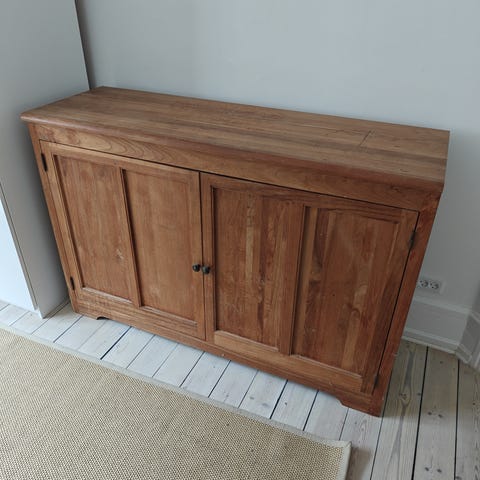 Et skab i mørkt træ med smedjerns