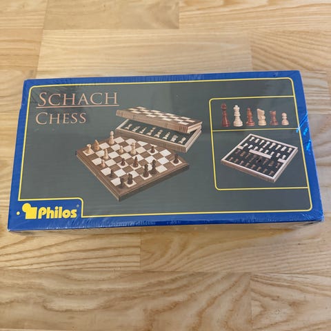 The chess board is made of laminated cardboard and has a field size of 50x50mm.