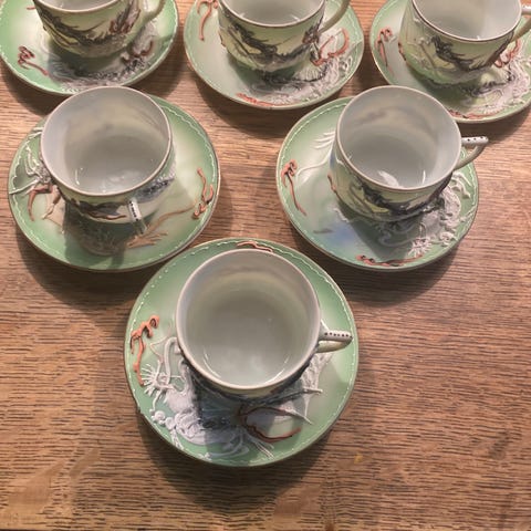 Porcelæn Tekop og Underkop med Sommerfugl