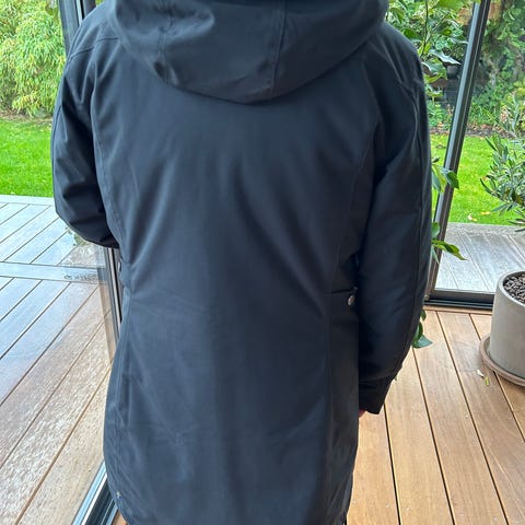 Fjällräven Frakke i størrelse S til kvinder. Jakken er sort og fremstillet af polyester. Den er designet til at give beskyttelse mod vejrforhold og har en hætte. Jakken er velegnet til udendørs brug og dagligt brug.