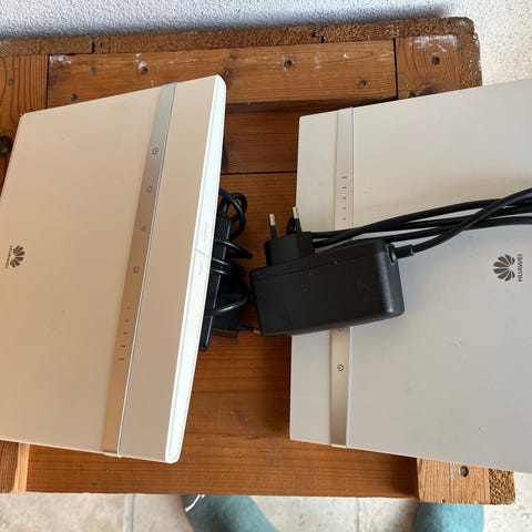 Huawei B315s-22 router til netværksforbindelse. Enheden har flere LAN-porte og leveres med strømforsyning. Designet til at understøtte trådløs internetadgang i hjemmet eller små kontormiljøer.