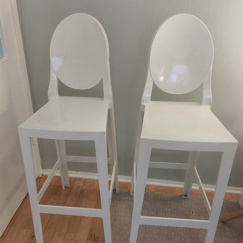 Sælger disse to fine og højde-justerbare barstole, som er designet af Antonio Citterio for Kartell, da vi ikke længere har bruger dem. Der er naturlige spor efter brug i plast-overfladen (dvs overfladiske ridser). Men pumpe og drejefunktion fejler intet på begge stole. De har ikke rigtigt været brugt de sidste år, så nu skal de videre til et ny hjem.