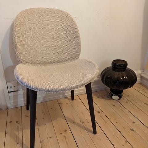 Vipp Lodge stolen er velegnet til spise- eller stuen. Denne spisestuestol har en formstøbt blød skal og ben af massivt egetræ. Skallen på Lodge stolen kan tilpasses i hele Vipps polstringssortiment