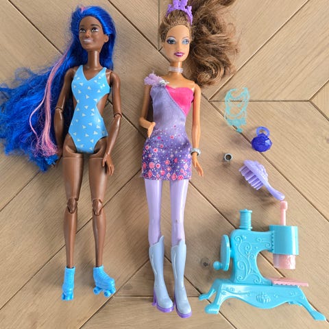 4 Barbiedukker med pynteting. Jeg sender gerne ☺️