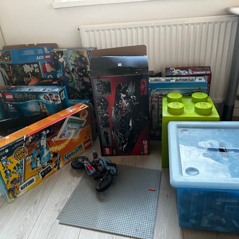 3 store plastkasser med lego flere sæt Harry Potter, bl.a. borgen, mange bionicle, vejbaneskinner og meget mere.
