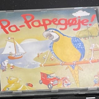 Pa-Papegøje musik cd med forskellige sange på dansk. Klassikere for børn og voksne. Indeholder 20 numre.