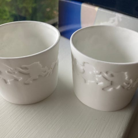 Royal Copenhagen små fyrfadsstager med dansende julenisser i relief der smukt lyser op med tændt fyrfad. De er fremstillet i bisquit porcelæn i serien White Christmas, designet af Finn Næss-Schmidt. De fremstår i hel og fin stand. Jeg sender gerne godt indpakket mod betaling af porto kr. 50.