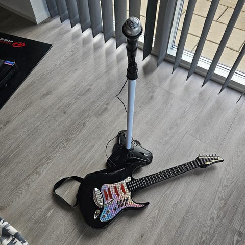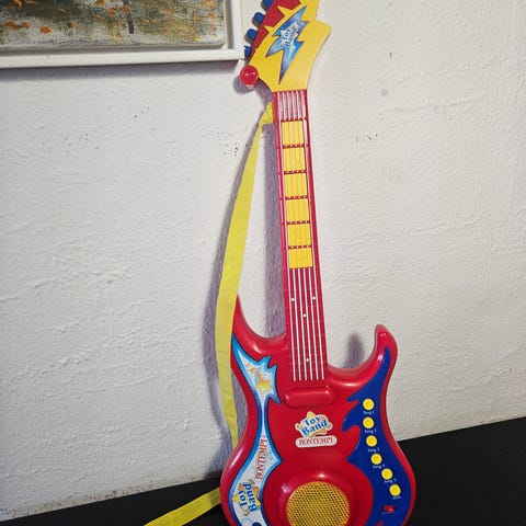 Denne elektriske guitar er helt perfekt til barnet, der elsker at lege rockmusiker eller som gerne vil lære guitaren som instrument bedre at kende. Virker som den skal, batterier er inkluderet.