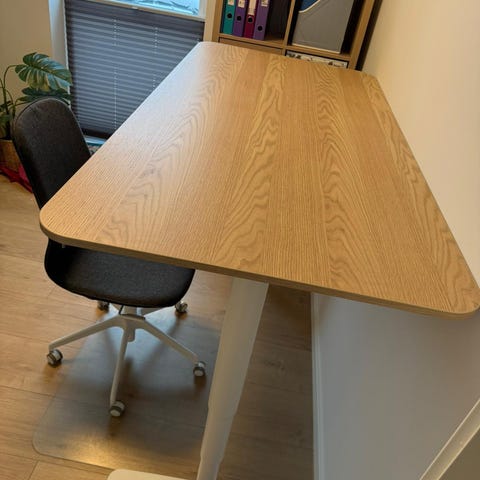 Stort og praktisk hæve-sænke skrivebord, perfekt til hjemmekontor, arbejde eller studie. Sælger fordi det ikke længere passer ind i min boligindretning. Bordet er stabilt og robust med justerbar højde — ideelt hvis du vil skifte mellem at sidde og stå under arbejdet.