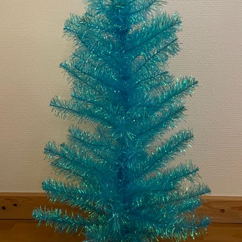 I noget hårdt flamingo lignende noget. Har en revne på ca 3 cm foran. Se billede. Højde 23,5 cm bredde 25 cm