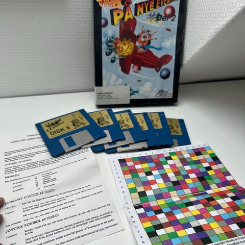 Hugo Amiga- spil. Testet til opstart. Emballage i flot stand.