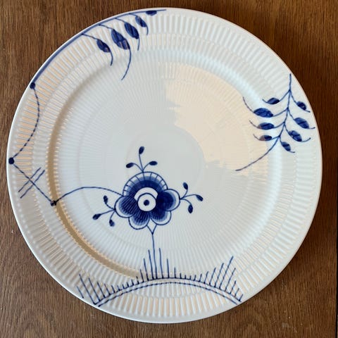 Royal Copenhagen blå mega Riflet 2. sortering tallerken Tallerkenen har det klassiske blå og hvide mønster og følgende sælges: