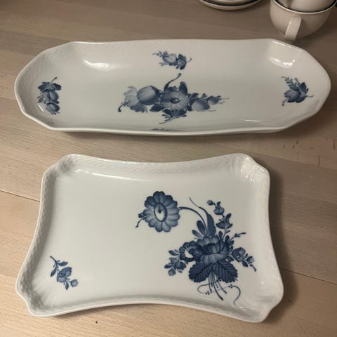 11 stk blå blomst kage tallerkener 1. Sortering samt to under tallerkener