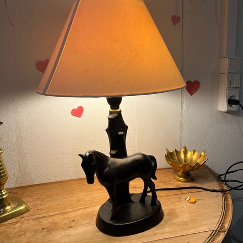 Den fremstår naturligvis med masser af patina fra tidens tand, men det giver bordlampen ekstra charme og karakter.
