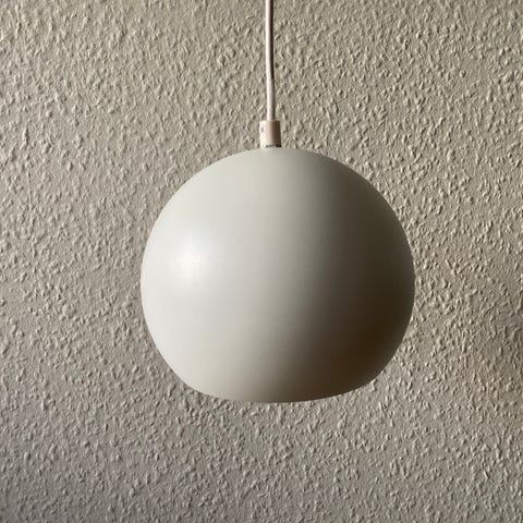 Hvide runde retro loftlamper med synlige brugsspor hist og pist. Obs på anderledes pære, se billede af lampen indeni.