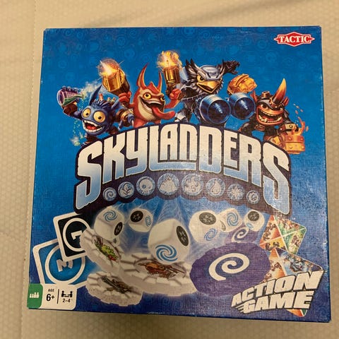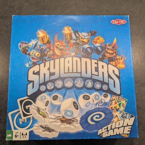 Skylanders Disk Toss spil med to hold og farvede ringe til at kaste. Spillet inkluderer to mål med 3 røde og 3 blå ringe til at kaste på. Egnet til indendørs og udendørs brug.