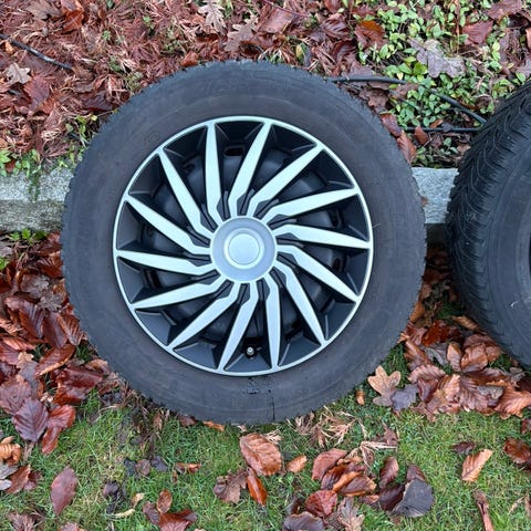 Mini Cooper vinterdæk med fælge. Sættet indeholder vinterdæk med fælge, velegnet til biler, materiale og størrelse ikke specificeret.