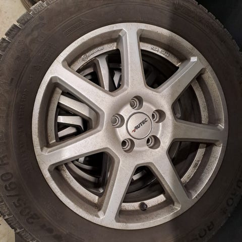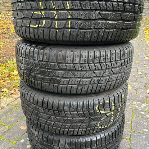 Passer bl. a. til VW Taigo, Polo og T-CROSS (og sikkert også til andre biler med 5 huller). Der er knapt 8 mm slidbane på dækkene, og de er M+S og "Winter"-mærkede (Bjergtoppe med snefnug).